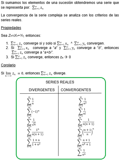 -El análisis e convergencia se realiza de igual manera que para el caso de variable real.
